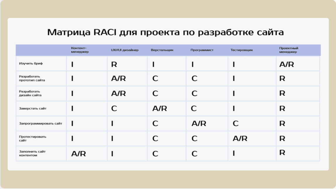 R — Responsible (ответственный) — тот, кто непосредственно выполняет задачу.